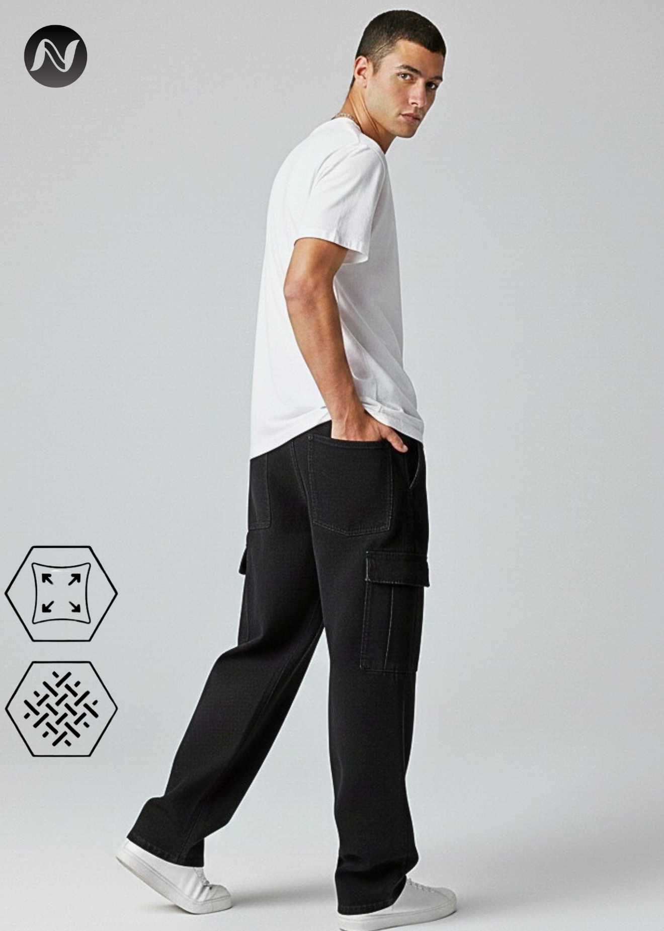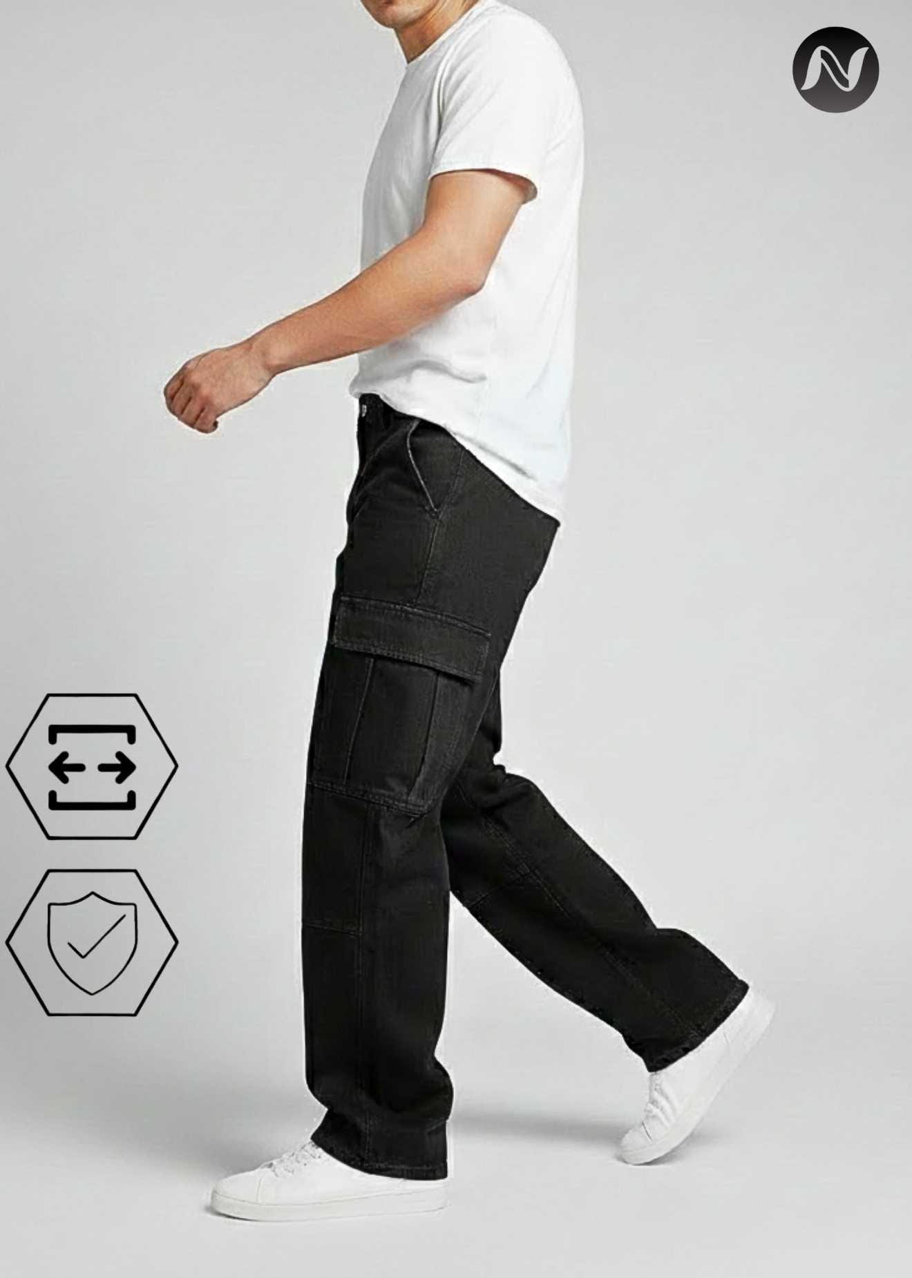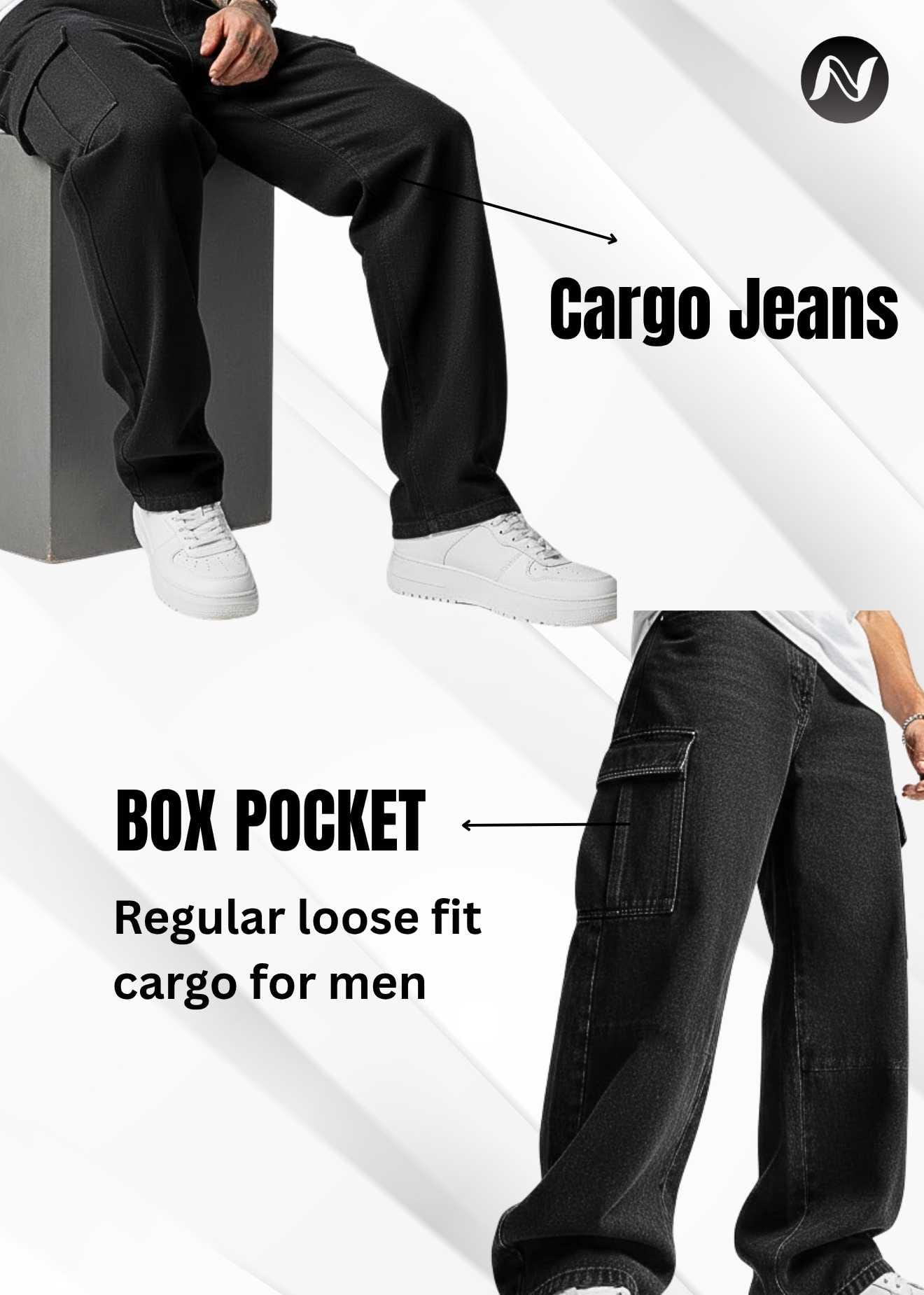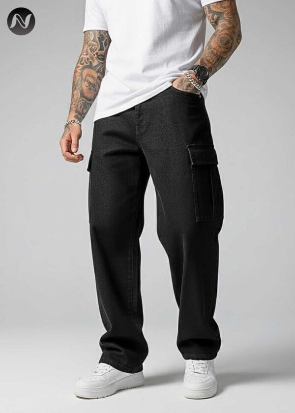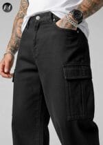 N Club Jeans “Vanguard” Urban Cargo Jeans for Men – Washed Black Loose Fit
