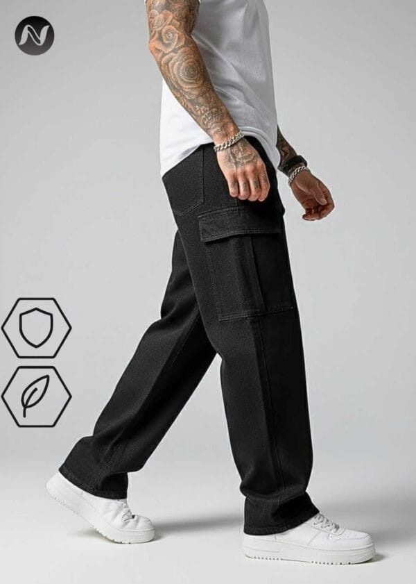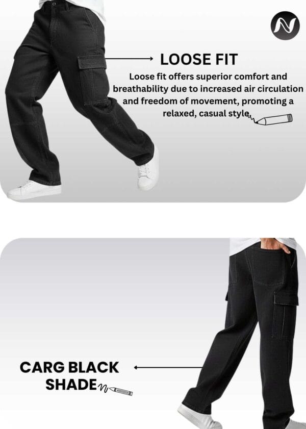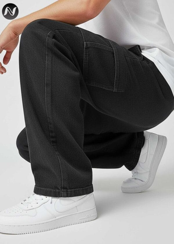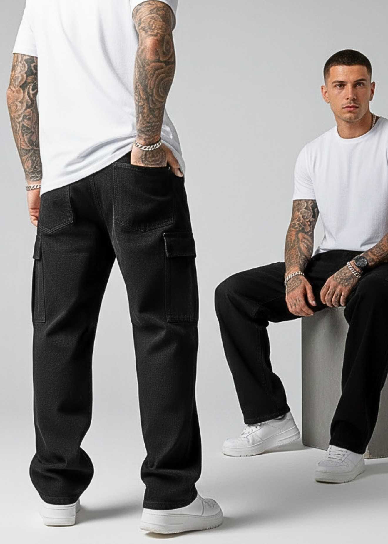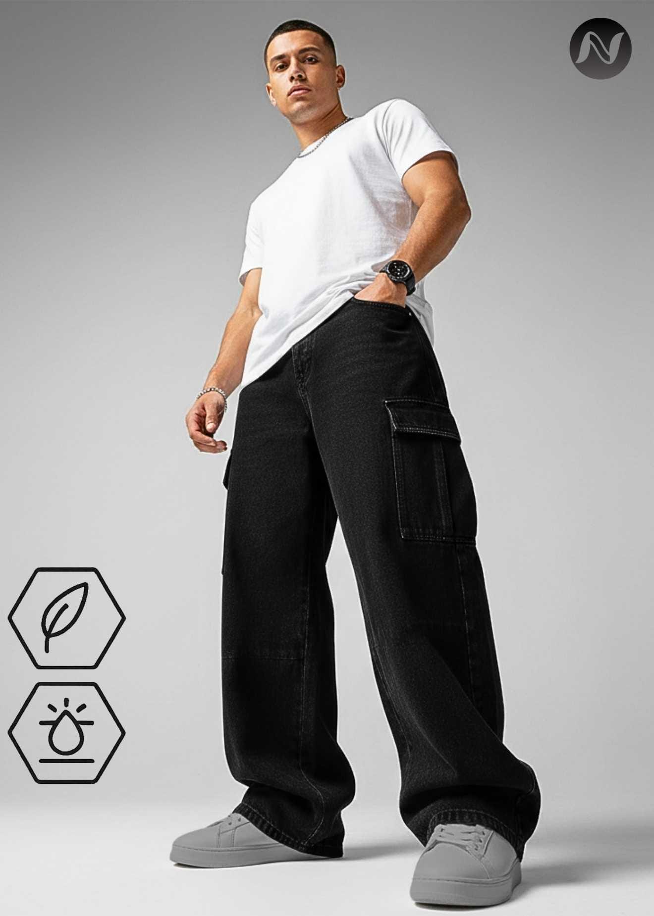 N Club Jeans “Vanguard” Urban Cargo Jeans for Men – Washed Black Loose Fit