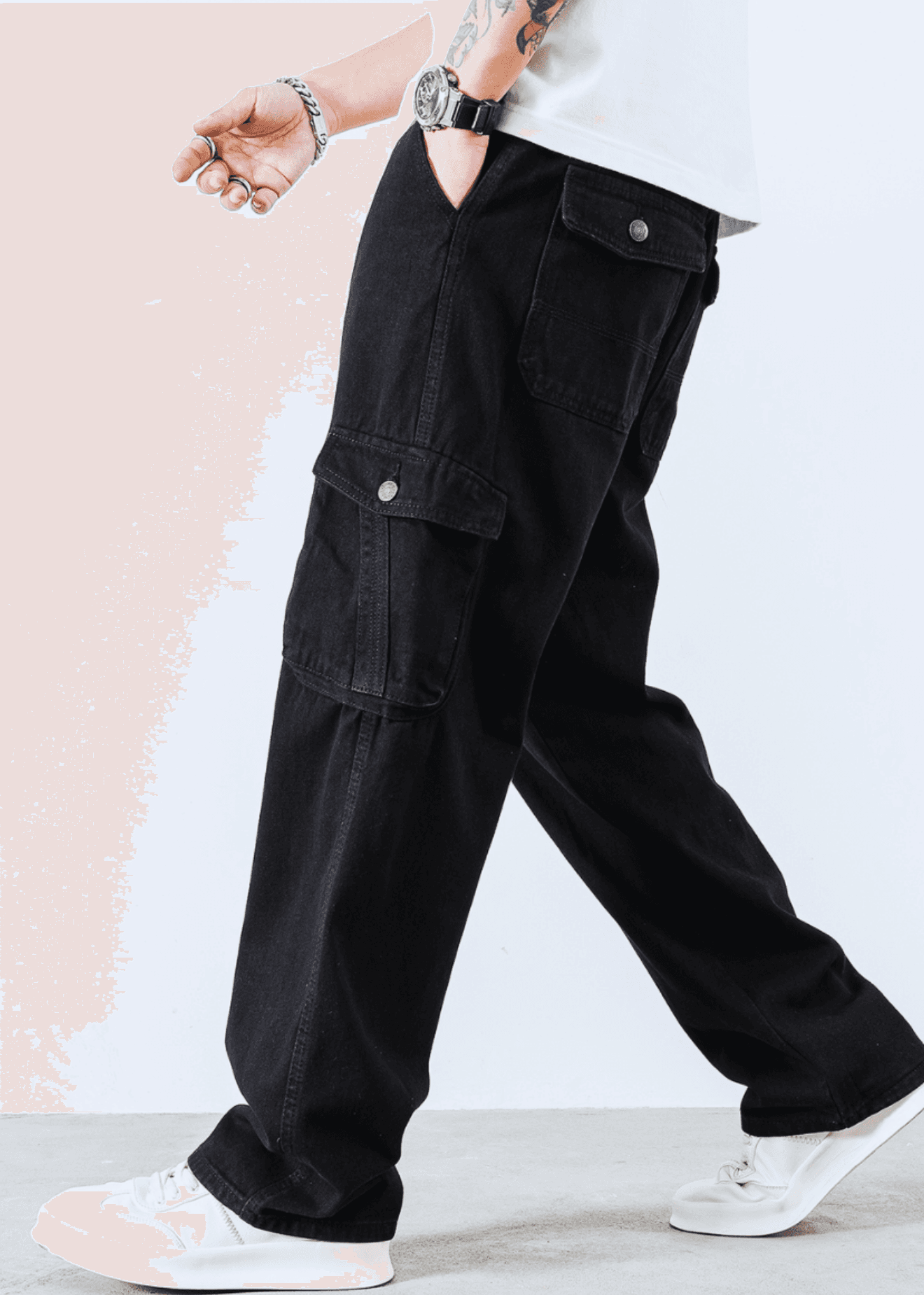 Features six spacious pockets, including two large side cargo pockets and two square back pockets, providing ample storage for all your essentials.