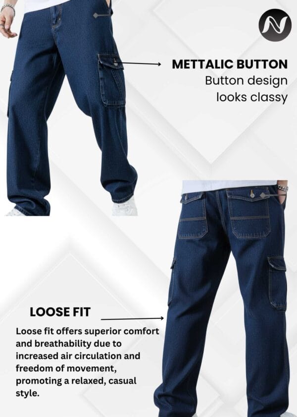 Equipped with multiple large cargo and patch pockets, these jeans offer secure, easy-access storage for all your essentials.